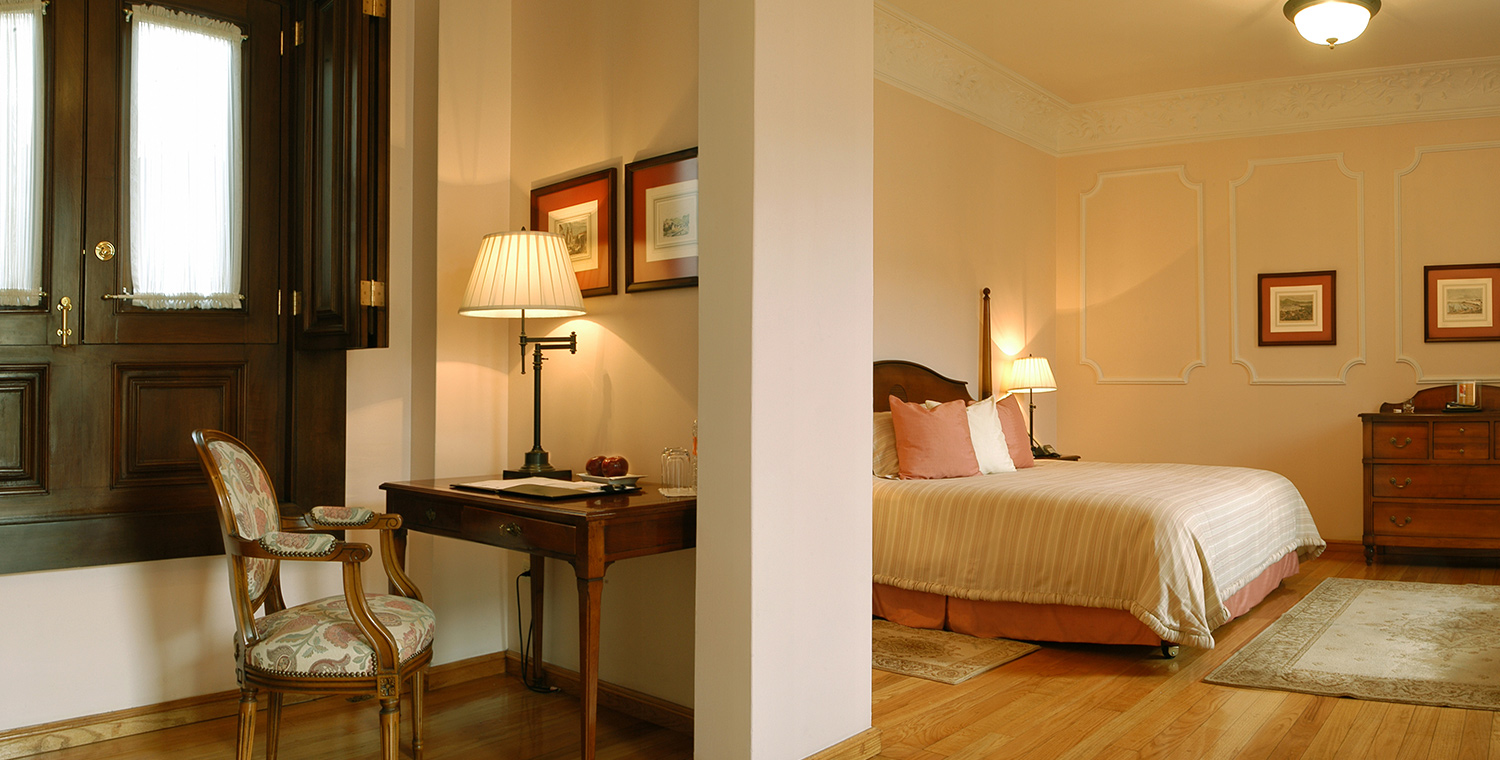 Inside, the halls, yards and niches work as a reflection of the city, enveloped by large flowerpots and illuminated by old style lamps hanging from the galleries and balconies. The suites have an intimate and embracing atmosphere; filled with French influence accessories, wooden floors, granite bath works and large windows that flood the rooms with natural lighting.